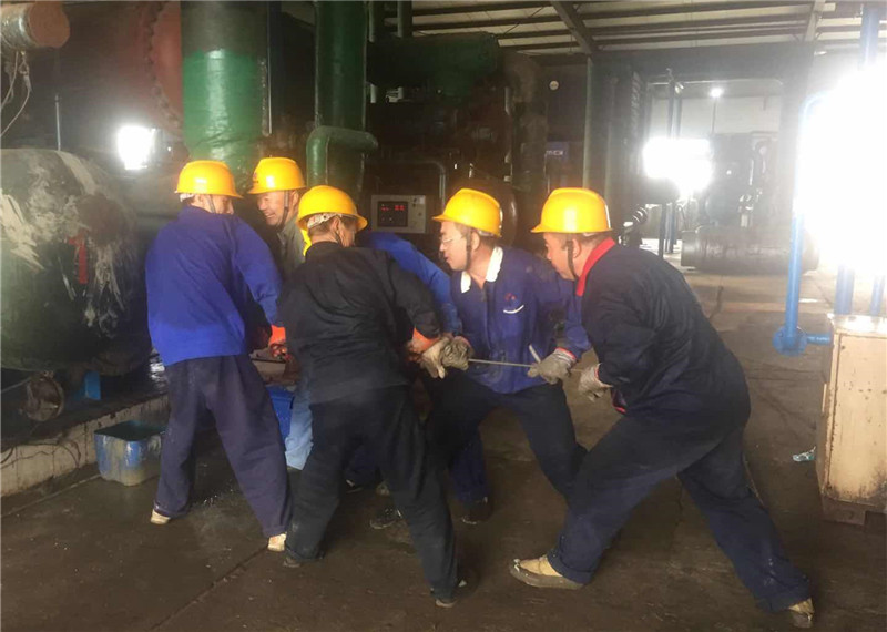 一車間職工齊心協力清理冰機換熱器