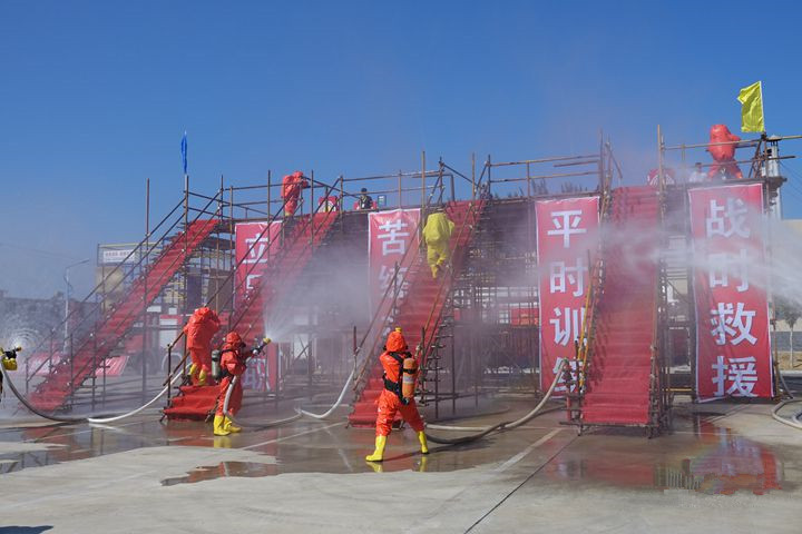 本屆競賽個人項目設置了理論考試、綜合體能、帶壓快速堵漏、單兵搶險救援等四大科目,集體項目為化工裝備初期火災處置,競賽科目設置立足救援任務,理論與體能相結合,技能與演練相結合。個人技能體現“實戰”,個人技能科目要求先佩戴呼吸器后競賽,模擬在實戰情況下完成競賽科目。綜合演練體現“實景”,最大限度還原事故現場。