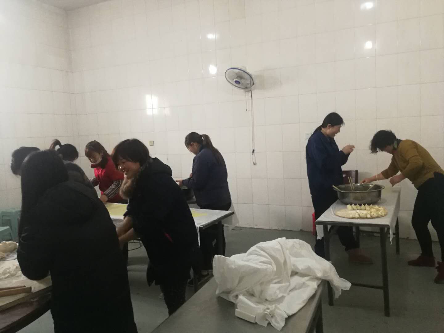 男女老少齊上陣,為生產一線職工包餃子