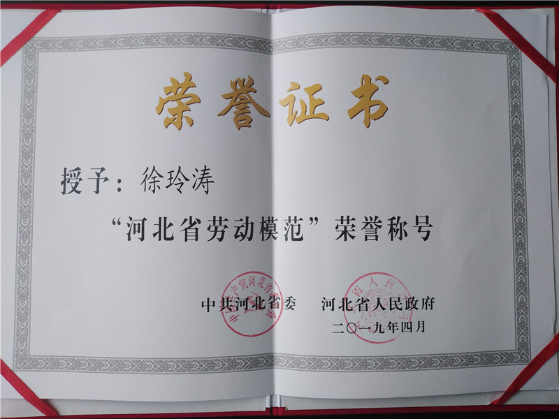 根據河北省委省政府《關于表彰2019年河北省勞動模范、先進工作者和先進集體的決定》,我公司三車間機修班班長徐玲濤同志榮獲河北省勞動模范光榮稱號,在此我們向徐玲濤同志表示祝賀,希望冀衡化學全體員工以徐玲濤同志為榜樣,立足本職崗位,勤學苦練,不斷提升個人操作技能和業務水平,為公司發展做出新的貢獻!