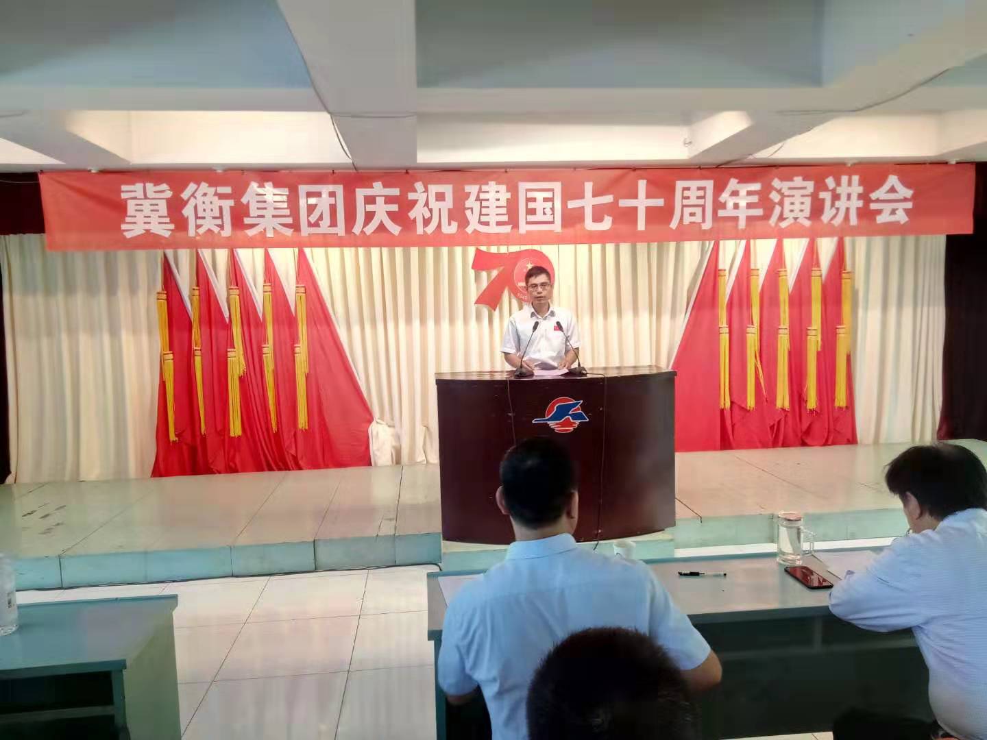 金風送爽,禮贊連天涌;碩果飄香,大地鋪錦繡。為慶祝中華人民共和國成立70周年,宣傳貫徹“不忘初心、牢記使命”主題教育的理想信念,全面展現(xiàn)新時代冀衡人積極奮進、奮發(fā)有為的精神風貌,9月27日上午,冀衡集團慶祝中華人民共和國成立70周年演講會成功舉辦。冀衡集團黨委書記肖秋生、黨委副書記韓紅喜,各公司黨支部書記,以及黨員、職工代表100余人參加了本次演講會。