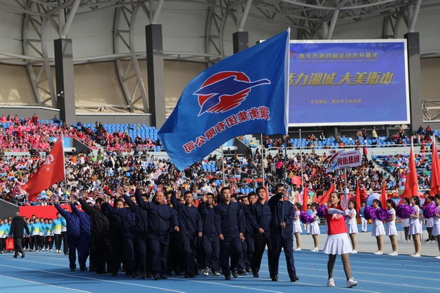 10月26日上午,以“活力湖城,大美衡水”為主題的衡水市第四屆運動會在市奧體中心體育場開幕,這次運動會是全市規模最大、水平最高、影響最廣的綜合體育賽事。市長吳曉華致辭并宣布開幕。省體育局巡視員張綽庵致辭。市領導王金剛、李洪林、鈕興輝、韓志剛、劉永軍、李建剛、崔建發、程蔚青、趙維東、馬衛、韓克儉、蘇振武、姚會亭出席開幕式。副市長崔海霞主持開幕式。來自各縣市區、市直各部門、中省直駐衡單位、企事業單位 、各大中專院校、社會團體的70支代表隊和11個團體操展演單位,以及由各縣市區提供的13輛花車參加了開幕式。冀衡集團43名職工組成的代表隊參加了開幕式。
