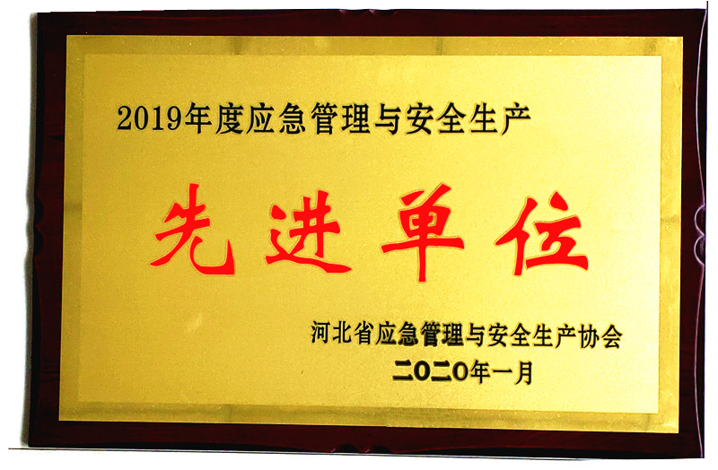 近日,我公司被河北省應急管理與安全生產協會評為2019年度河北省應急管理與安全生產先進單位,我公司曹云輝、周秀蘭同志被評為2019年度河北省應急管理與安全生產先進個人。