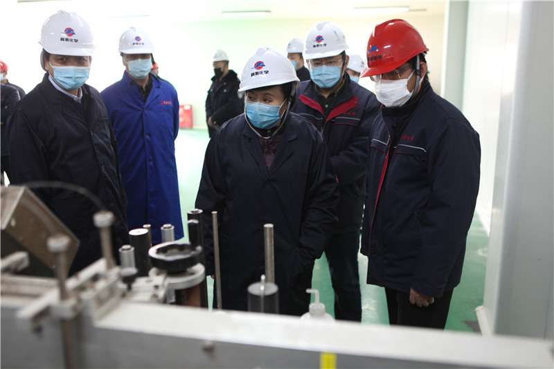 丁錦霞書(shū)記現(xiàn)場(chǎng)查看我公司84消毒液生產(chǎn)情況