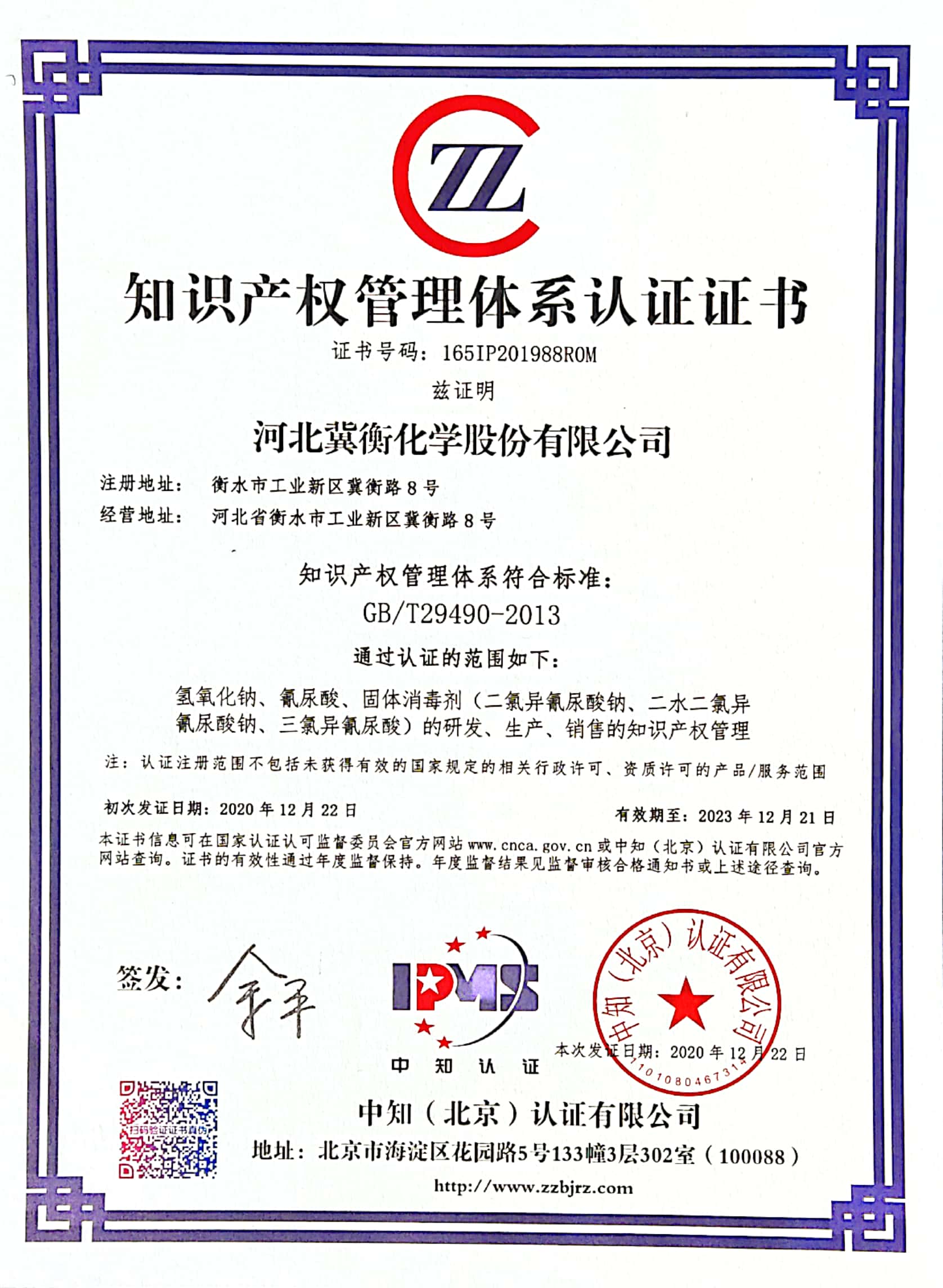 12月20日,中知(北京)認證公司的三位專家來到我公司,對我公司的知識產權管理體系實施、運行情況進行現場審核,經過整整一天的認真審核,完成各項審核工作,審核結果為公司知識產權管理體系的建立、實施、運行符合標準要求,12月22為我公司頒發了認證證書,此次知識產權貫標認證工作的順利通過,標志著我公司知識產權管理規范的標準貫穿公司的各個環節,知識產權的規范化管理將進一步助力公司發展!